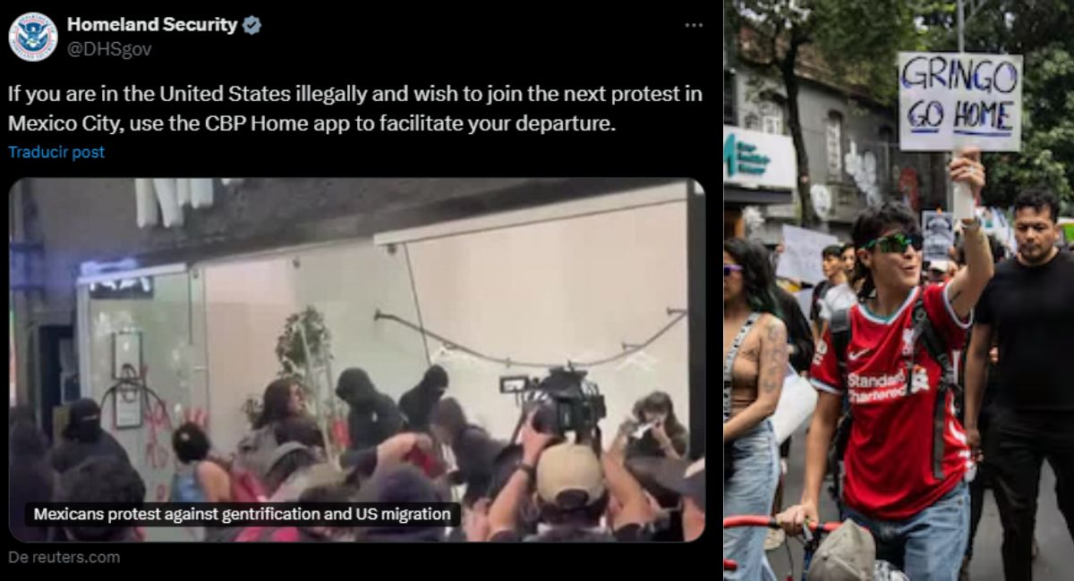 El Departamento de Seguridad Nacional (DHS) de Estados Unidos publicó en redes sociales un mensaje donde sugiere, de manera irónica, que los migrantes indocumentados interesados en participar en marchas contra la gentrificación en la Ciudad de México pueden utilizar la aplicación CBP Home para facilitar su salida del país.
