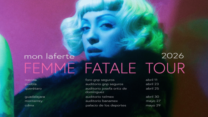 La artista chileno-mexicana Mon Laferte acaba de confirmar una ambiciosa gira por México como parte de su álbum más reciente, Femme Fatale. La gira se desarrollará en seis ciudades mexicanas a lo largo de la primavera de 2026: Mérida (Foro GNP Seguros) el 11 de abril; Puebla (Auditorio GNP Seguros) el 23 de abril; Querétaro (Auditorio Josefa Ortiz de Domínguez) el 25 de abril; Guadalajara (Auditorio Telmex) el 30 de abril; Monterrey (Auditorio Banamex) el 27 de mayo; y Ciudad de México (Palacio de los Deportes) el 29 de mayo.